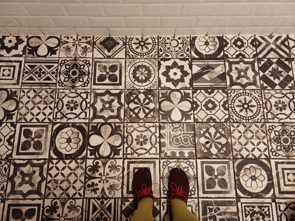 beim Gang aufs WC überraschen mich dann noch diese schönen Fließen auf dem Boden … das Café Hardenberg, eine echte Wiederentdeckung – ich werde wiederkommen!