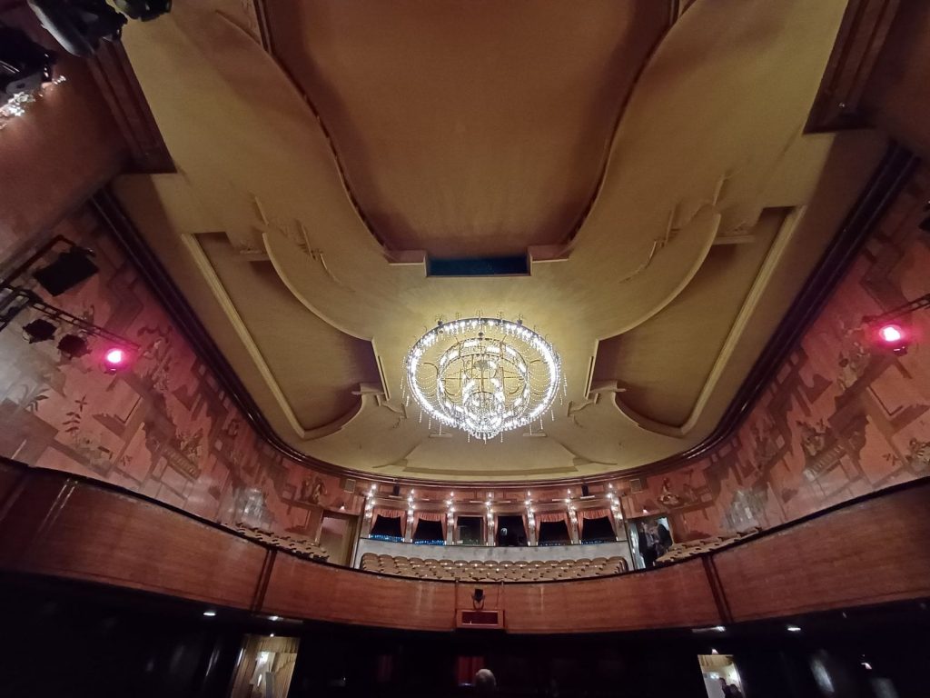 … wenigstens hatte mein Fotografen-Auge vor Vorstellungsbeginn noch Freude am Saal und hat diese Engelsflügel an der Decke entdeckt.